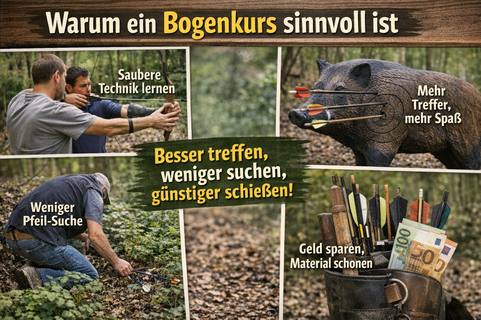 Wer sauber schießt, verliert weniger Pfeile, beschädigt weniger Material und vermeidet teure Fehlkäufe. Unterm Strich ist eine fundierte Ausbildung daher oft günstiger, als sich mühsam und verlustreich selbst heranzutasten.